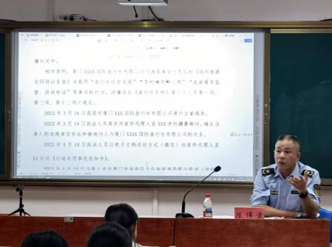 此外,执法人员还详细剖析了旅游行业典型案例,提醒从业人员不得虚假宣传诱导消费,禁止向游客兜售物品、索要小费,或与商家串通胁迫购物;必须持有有效导游证,禁止无证上岗或伪造证件执业,否则面临罚款、公告批评及信用记录受损风险。通过具体案例揭示法律风险,明确法律边界,引导经营者诚信经营、消费者依法维权。